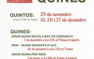 Durant aquesta temporada de festes, Alp acollirà diverses sessions de quintos i quines, organitzades per diferents col·lectius del municipi. Tindran lloc tant al Teatre com al Pala …