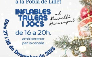 Diversió assegurada per als més petits aquestes festes! Gaudeix d’una tarda plena d’inflables, tallers i jocs al Pavelló Municipal, amb berenar inclòs per a la canalla. Dies 27 i 2 …