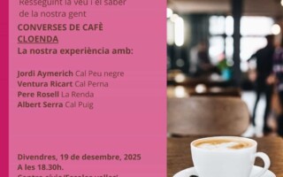 Converses de cafè – Cloenda La nostra experiència amb: Jordi Aymerich – Cal Peu negre Ventura Ricart – Cal Perna Pere Rosell – La Renda Albert Serra – Cal Puig Divendres, 19 de des …
