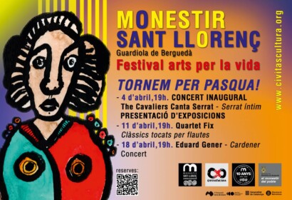 Festival Arts per la Vida Tornem per Pasqua! 4 d’abril, 19 h Concert inaugural: The Cavaliers canta Serrat – Serrat íntim Presentació d’exposicions 11 d’abril, 19 h Quartet Fix Clàssics tocats per fla …