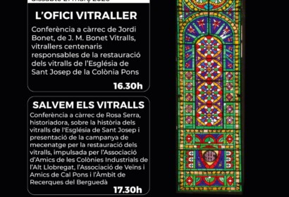 Descobrint els vitralls de la Colònia Pons Dissabte, 21 de març de 2026 16.30 h L’ofici vitraller Conferència a càrrec de Jordi Bonet, de J. M. Bonet Vitralls, vitrallers centenaris responsables de la …