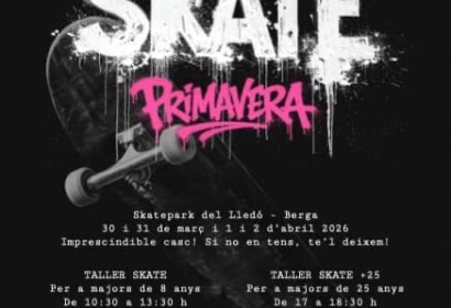 Skatepark del Lledó – Berga 30 i 31 de març i 1 i 2 d’abril de 2026 Imprescindible casc! Si no en tens, te’l deixem! Taller skate (de 10 a 16 anys) De 10.30 h a 13.30 h Taller skate (de 16 a 25 anys) …