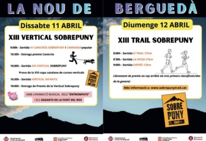 Dissabte, 11 d’abril XIII Vertical Sobrepuny 9.00 h Sortida IV Canicròs Sobrepuny i caminada popular 10.30 h Entrega de premis Canicròs 16.00 h Sortida XIII Vertical Sobrepuny Prova de la XVI Copa Cat …