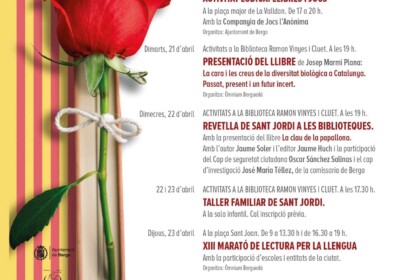 Berga celebra la Diada de Sant Jordi amb un ampli programa d’activitats culturals per a tots els Públics, amb la literatura, la música i la tradició com a protagonistes.