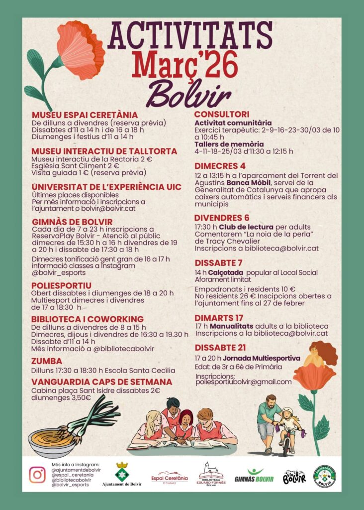 Descobreix totes les propostes culturals, esportives i comunitàries d’aquest mes de març a Bolvir. Activitats per a totes les edats i interessos!