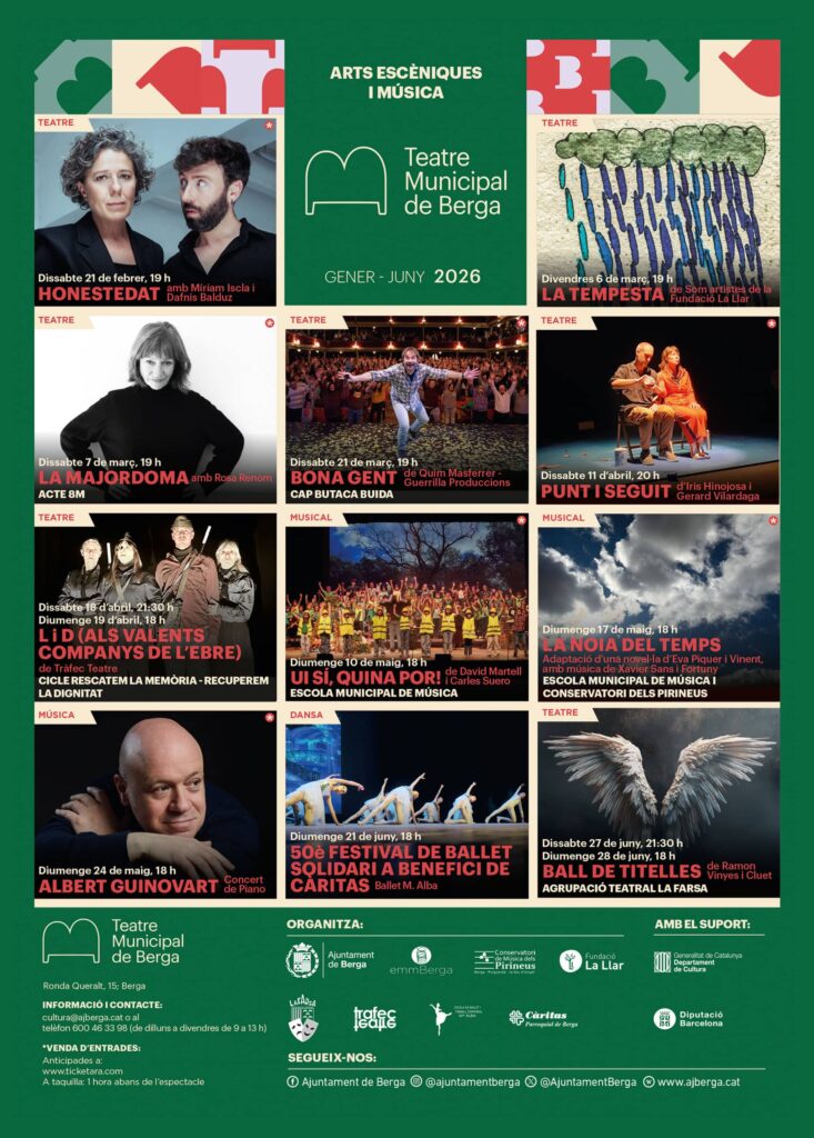 El Teatre Municipal de Berga presenta la programació d’arts escèniques i música per al primer semestre de 2026, amb una proposta variada que inclou teatre, música, dansa i espectacles familiars.