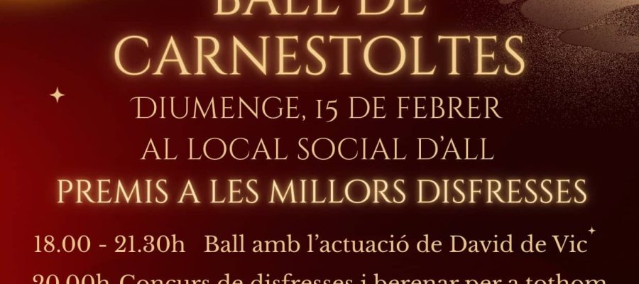 Els Amics del Ball i l’Ajuntament d’Isòvol et conviden a gaudir d’una vetllada festiva amb música en directe, disfresses i molta diversió.