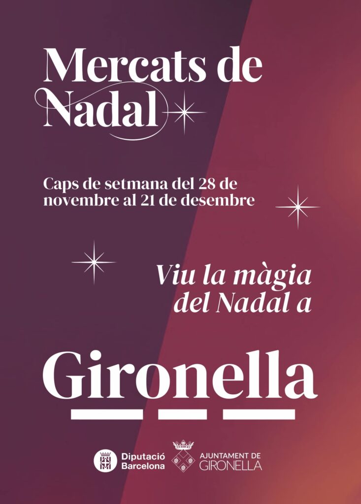 Gironella celebra els Mercats de Nadal cada cap de setmana, del 28 de novembre al 21 de desembre, amb una programació plena d’activitats per a tota la família: música, dansa, espectacles, tallers infantils i molt més.