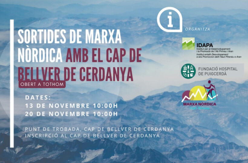 Obert a tothom Dates: 13 de novembre — 10:00 h 20 de novembre — 10:00 h Punt de trobada: CAP de Bellver de Cerdanya Inscripció: al CAP de Bellver de Cerdanya Organitza: IDAPA — Institut per al Desenvolupament i la Promoció de l’Alt Pirineu i Aran Fundació Hospital de Puigcerdà Marxa Nòrdica — Bellve …