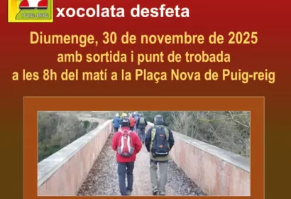 El Club CqUie de Puig-reig organitza una caminada popular fins a Cal Pallot amb premi final: esmorzar de pa torrat i xocolata desfeta per a tots els participants. Activitat: Caminada a Cal Pallot + es …