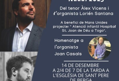 Concert solidari de Nadal amb la participació del tenor Àlex Vicens i l’organista Lorién Santana, en homenatge a l’organista Joan Casals. L’esdeveniment té finalitat benèfica i els fons es destinaran …