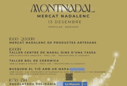 Montclar es vesteix de festa amb el Montnadal, una jornada plena d’activitats, música, tallers i solidaritat en un entorn únic. Activitat: Montnadal – Mercat Nadalenc 📍 Montclar (Berguedà) 13 de desem …