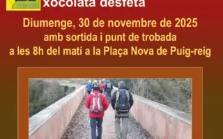 El Club CqUie de Puig-reig organitza una caminada popular fins a Cal Pallot amb premi final: esmorzar de pa torrat i xocolata desfeta per a tots els participants. Activitat: Camina …