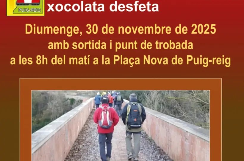 El Club CqUie de Puig-reig organitza una caminada popular fins a Cal Pallot amb premi final: esmorzar de pa torrat i xocolata desfeta per a tots els participants. Activitat: Caminada a Cal Pallot + esmorzar 📍 Sortida des de la Plaça Nova de Puig-reig 🗓️ Diumenge, 30 de novembre de 2025 🕗 8:00 h del …