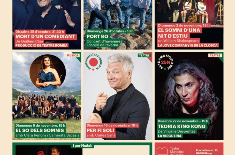 Del 20 de setembre a l’11 de gener, el Teatre Municipal de Berga ha aixecat el teló ambuna programació variada de 11 espectacles de teatre i música. La temporada combina noms reconeguts de l’escena catalana, propostes locals i iniciatives socials, ambl’impuls de l’Ajuntament de Berga i el supor …