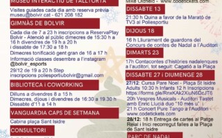 Aquest mes de desembre, Bolvir s’omple d’activitats culturals, esportives i nadalenques per a totes les edats. A continuació, et detallem totes les propostes: Museu Espai Ceretània …