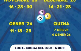 Torna la temporada de quintos i quines al Poliesportiu amb sessions setmanals i premis per a tothom. Hora: 17.30 h Lloc: Local Social del Club Preu per cartró: 14 € Aforament limit …