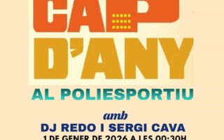 Al poliesportiu Amb DJ Redo i Sergi Cava 1 de gener de 2026 a les 00:30 h Preu: 15 € + 1 consumició Venda d’entrades a l’Ajuntament