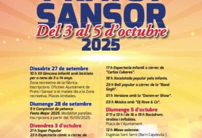 Del 3 al 5 d’octubre Amb l’arribada de la tardor Prats i Sansor es prepara per viure la seva Festa Major, una de les cites més esperades de l’any al municipi. Durant diversos dies, els carrers i les p …