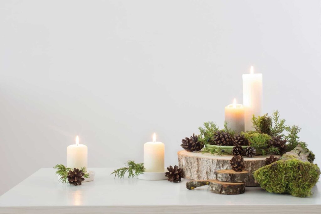 Per als detalls naturals, les pinyes i les branques d’avet són complements ideals. Es poden utilitzar per crear centres de taula o decorar espais com el prestatge de la llar de foc, aportant una textura rústica i una fragància natural que evoca l’hivern.