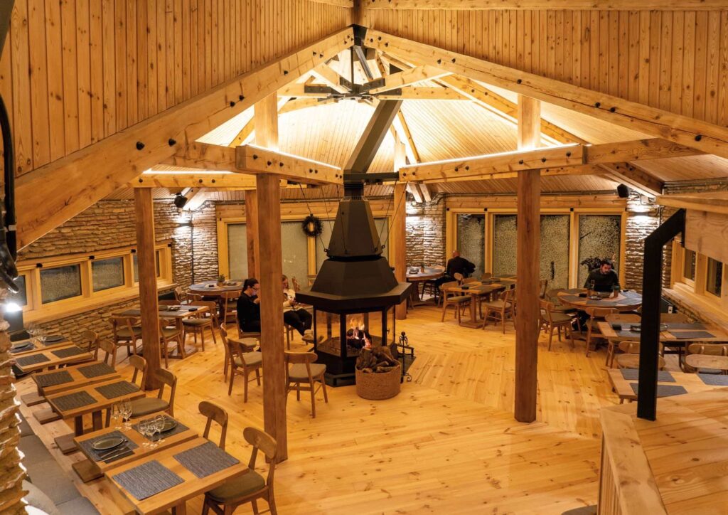 La reforma ha sabut trobar l’equilibri entre modernització i respecte per l’entorn. S’ha reorganitzat el conjunt d’edificis mantenintla seva icònica forma hexagonal, perfectament integrada al Parc Natural del Cadí-Moixeró. El projecte ha inclòs la renovacióintegral de l‘espai del restaurant, la construcció d’una nova sala polivalent, l’ampliació de les terrasses i una clara millora delsaccessos, amb una atenció especial a l’accessibilitat universal.