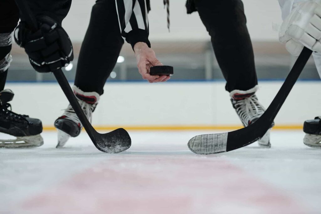 Hoquei gel. És un esport que es juga entre dos equips de sis jugadors amb patins sobre una pista de gel. Un partit consisteix en tres períodes de 20 minuts on els dos equips tenen l’objectiu d’aconseguir fer més gols a l’equip contrari introduint un puck (un disc dur de goma negre) dins de la porteria rival amb ajuda d’un stick.