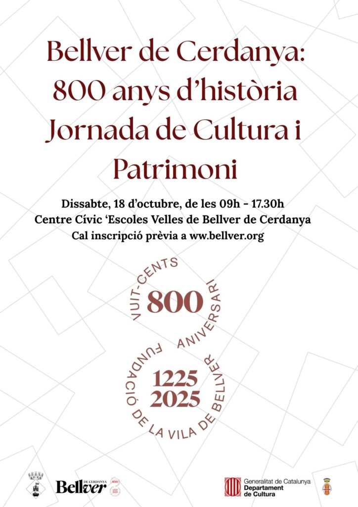 Bellver de Cerdanya celebrarà aquest mes d’octubre un dels actes centrals del programa de commemoració dels seus 800 anys d’història. El dissabte 18 d’octubre, el Centre Cívic Escoles Velles acollirà la Jornada de Cultura i Patrimoni, una cita que reunirà historiadors, investigadors i especialistes en un exercici de memòria col·lectiva i posada en valor del llegat de la vila, fundada l’any 1225.