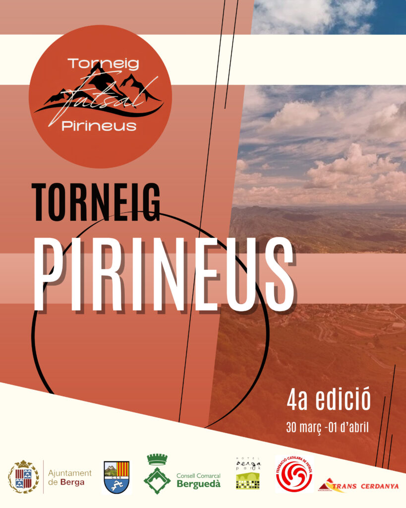 El Torneig Pirineus de futbol sala aterrarà a la ciutat de Berga per primera vegada. L’organització de l’esdeveniment esportiu ha decidit apostar pel Berguedà, en la seva quarta edició, després del seu pas per la Cerdanya. La competició reunirà diferents equips de diferents punts de Catalunya en un entorn únic, envoltat de natura i valors esportius amb l’objectiu d’impulsar el futbol base i donar visibilitat a nous talents. El Torneig Pirineus se celebrarà del 30 de març a l’1 d’abril i compta amb la col·laboració de la Federació Catalana de Futbol, el Consell Esportiu del Berguedà, l’Ajuntament de Berga i el Consell Comarcal del Berguedà.
